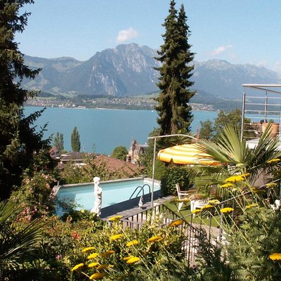 Gönnen Sie sich ruhige Momente unter der Sonne des Berner Oberlands. Gehen Sie Ihren Gedanken nach, während sie vom Liegestuhl unter Palmen, das Treiben auf dem Thunersee verfolgen.